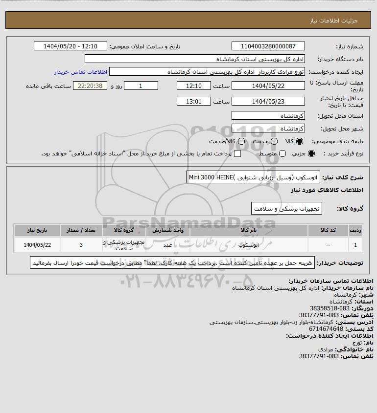 شرح کلی نیاز: اتوسکوپ (وسیل ارزیابی شنوایی )Mini 3000 HEINE