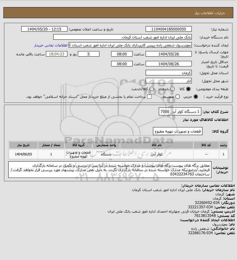 شرح کلی نیاز: 1 دستگاه کولر آبی 7000