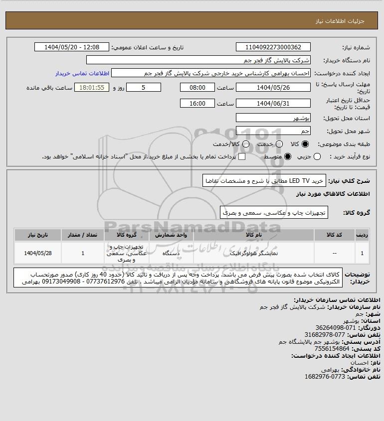 استعلام خرید LED TV مطابق با شرح و مشخصات تقاضا, استعلام خرید LED TV مطابق با شرح و مشخصات تقاضا