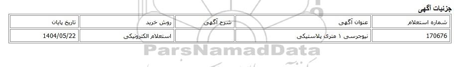 | 170676 | نیوجرسی ۱ متری پلاستیکی | استعلام الکترونیکی | 1404/05/22 |