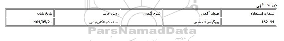 | 162194 | پروگرامر آی سی | استعلام الکترونیکی | 1404/05/21 |
