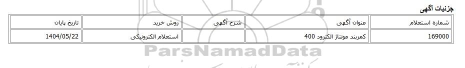 169000کمربند مونتاژ الکترود 400استعلام الکترونیکی1404/05/22