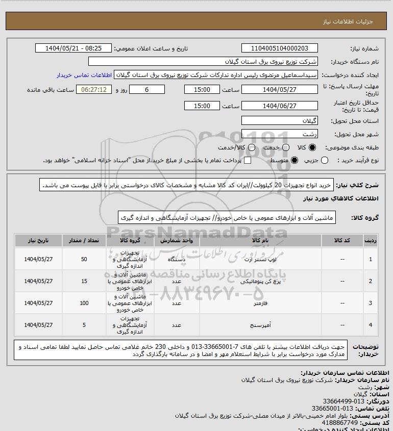 نام دستگاه خریدار:شرکت توزیع نیروی برق استان گیلان