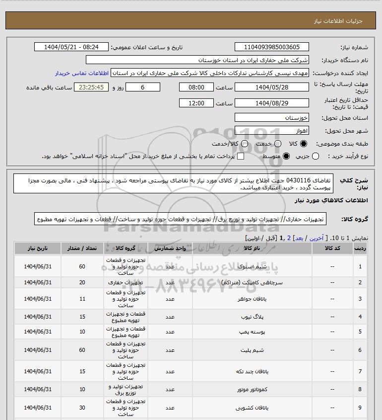 نام دستگاه خریدار:شرکت ملی حفاری ایران در استان خوزستان
