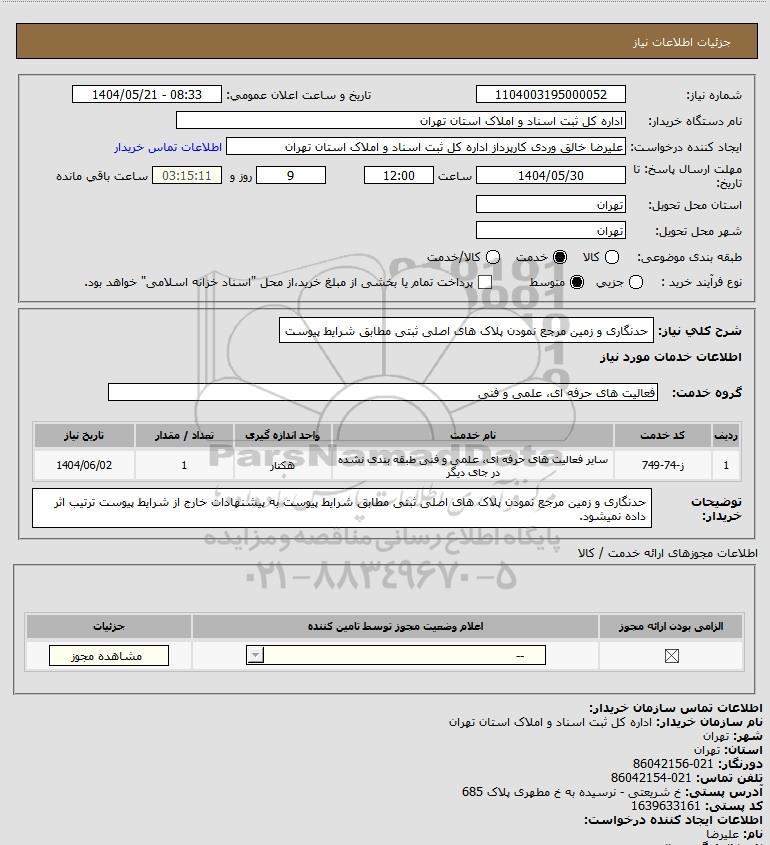 استعلام حدنگاری و زمین مرجع نمودن پلاک های اصلی ثبتی مطابق شرایط پیوست, استعلام حدنگاری و زمین مرجع نمودن پلاک های اصلی ثبتی مطابق شرایط پیوست