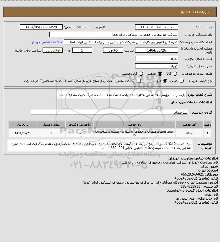 نام دستگاه خریدار:شرکت هواپیمایی جمهوری اسلامی ایران هما
