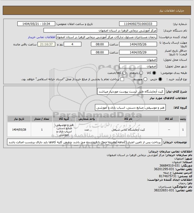 1 استعلام الکترونیکی لوازم آزمایشگاهی 9811445 1404/08/17 new special not payed خراسان رضوی