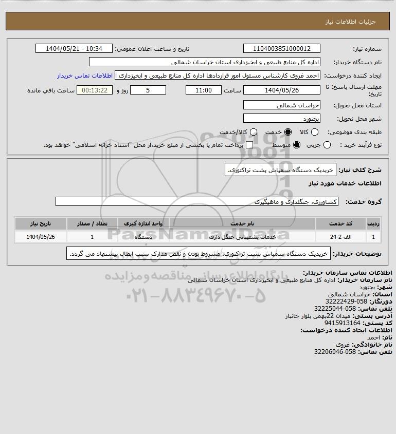 نام دستگاه خریدار:اداره کل منابع طبیعی و ابخیزداری استان خراسان شمالی