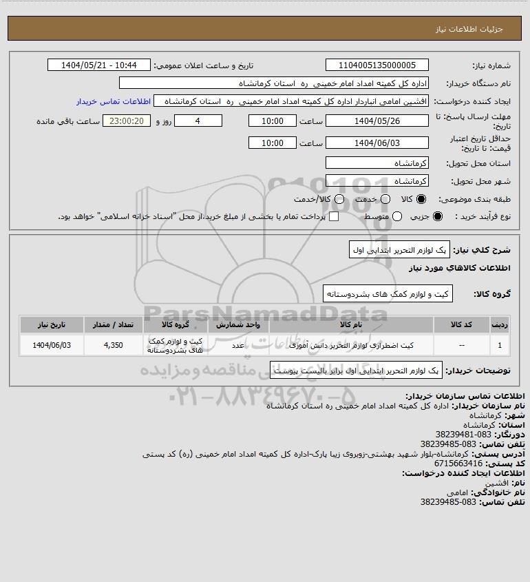1 -- کیت اضطراری لوازم التحریر دانش آموزی عدد کیت و لوازم کمک های بشردوستانه 4,350 1404/06/03