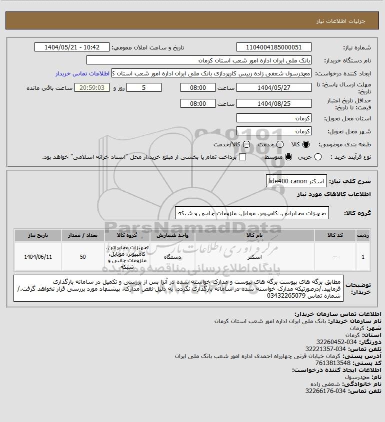 شرح کلی نیاز: اسکنر lide400 canon