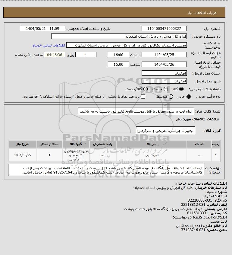 نام دستگاه خریدار:اداره کل اموزش و پرورش استان اصفهان