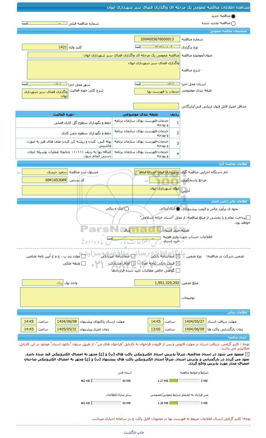 | نام دستگاه اجرایی مناقصه گزار | شهرداری ایوان استان ایلام | مسئول ثبت مناقصه | سعید حیدری |