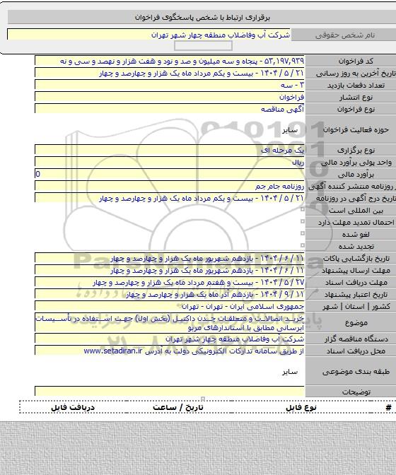 شرکت آب وفاضلاب منطقه چهار شهر تهران