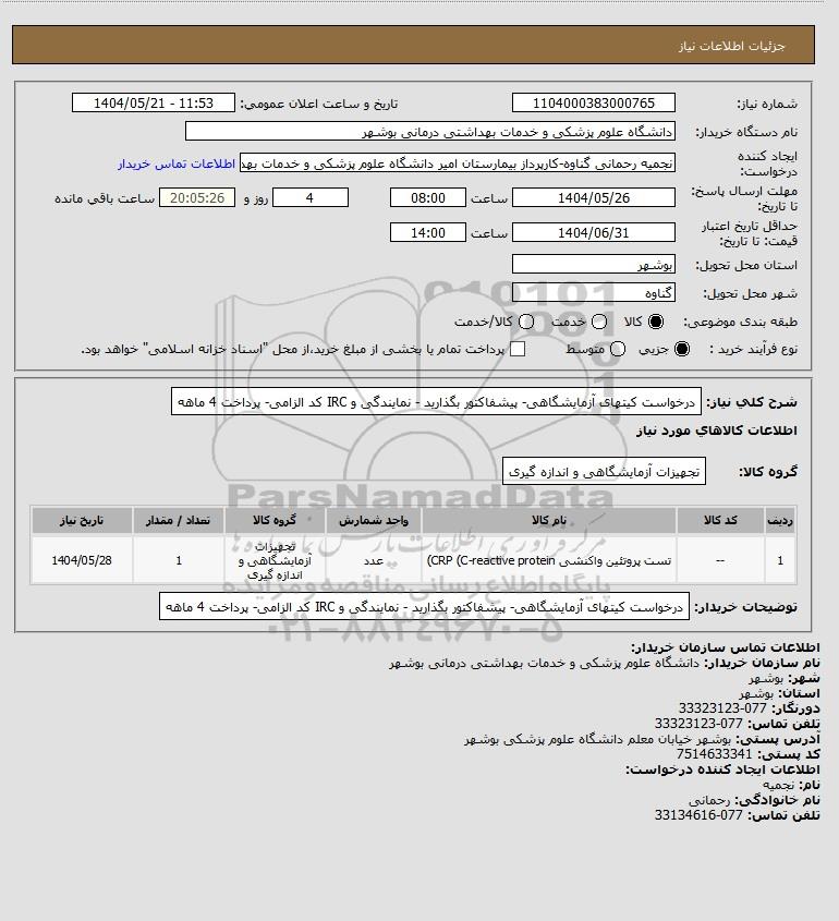 استعلام درخواست کیتهای آزمایشگاهی- پیشفاکتور بگذارید - نمایندگی و IRC کد الزامی- پرداخت 4 ماهه, استعلام درخواست کیتهای آزمایشگاهی- پیشفاکتور بگذارید - نمایندگی و IRC کد الزامی- پرداخت 4 ماهه