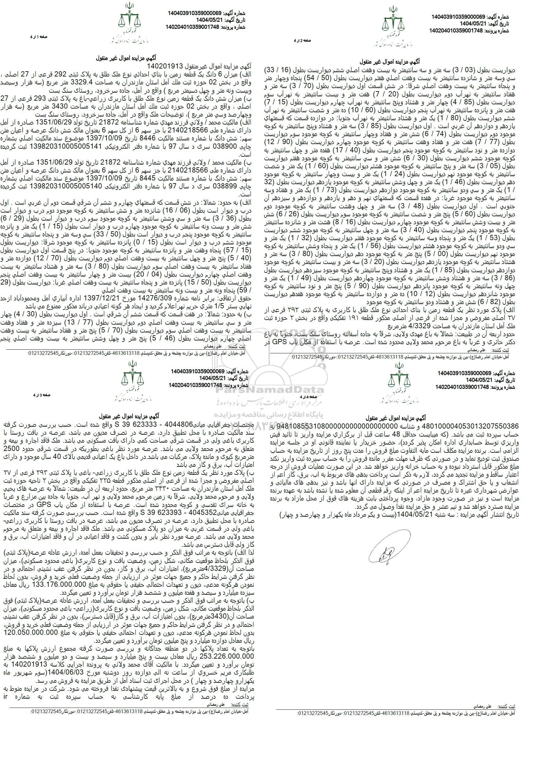 مزایده شش دانگ یک قطعه زمین پلاک ثبتی 292 فرعی
