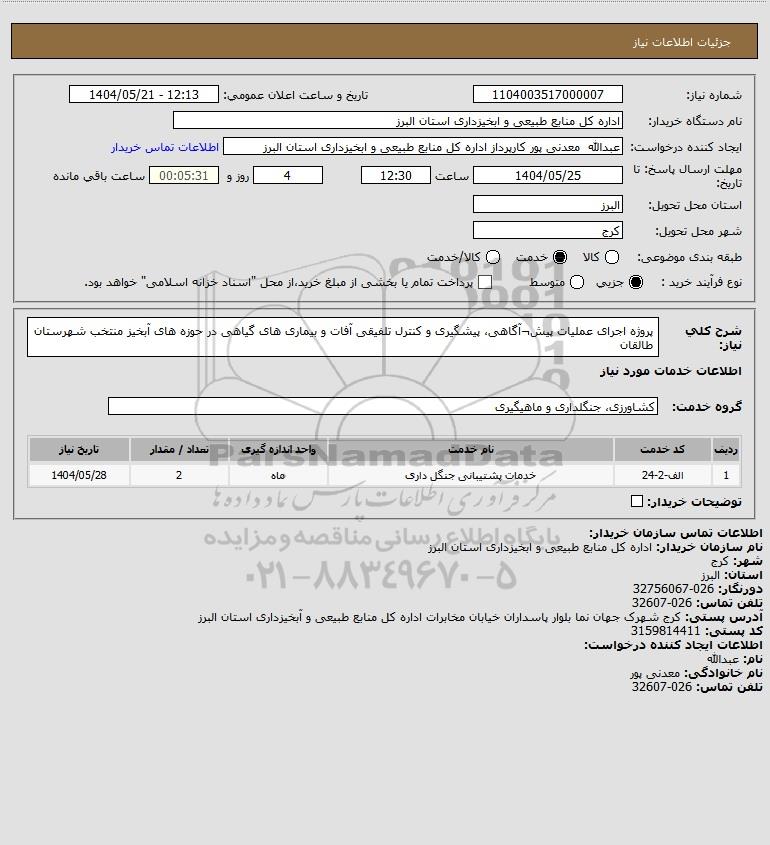 نام سازمان خریدار: اداره کل منابع طبیعی و ابخیزداری استان البرز