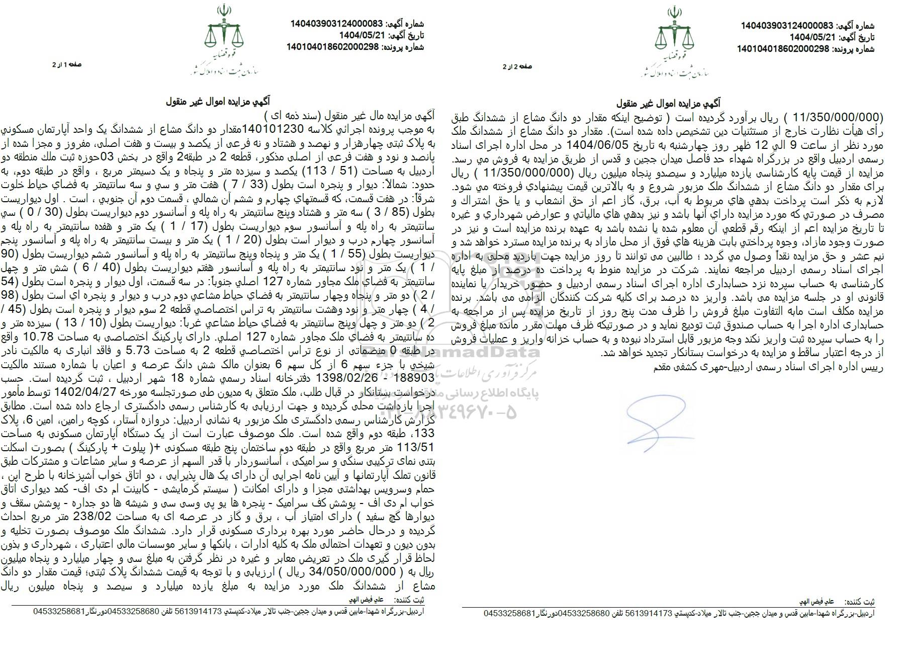 شماره آگهی: 140403903124000083