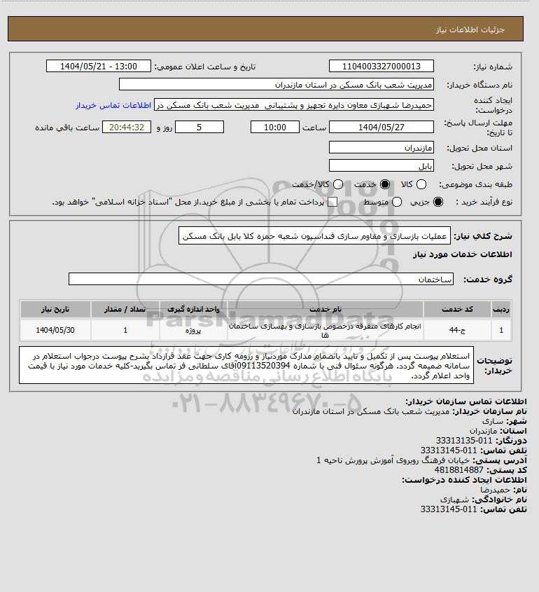 استعلام عملیات بازسازی و مقاوم سازی فنداسیون شعبه حمزه کلا بابل بانک مسکن, استعلام عملیات بازسازی و مقاوم سازی فنداسیون شعبه حمزه کلا بابل بانک مسکن