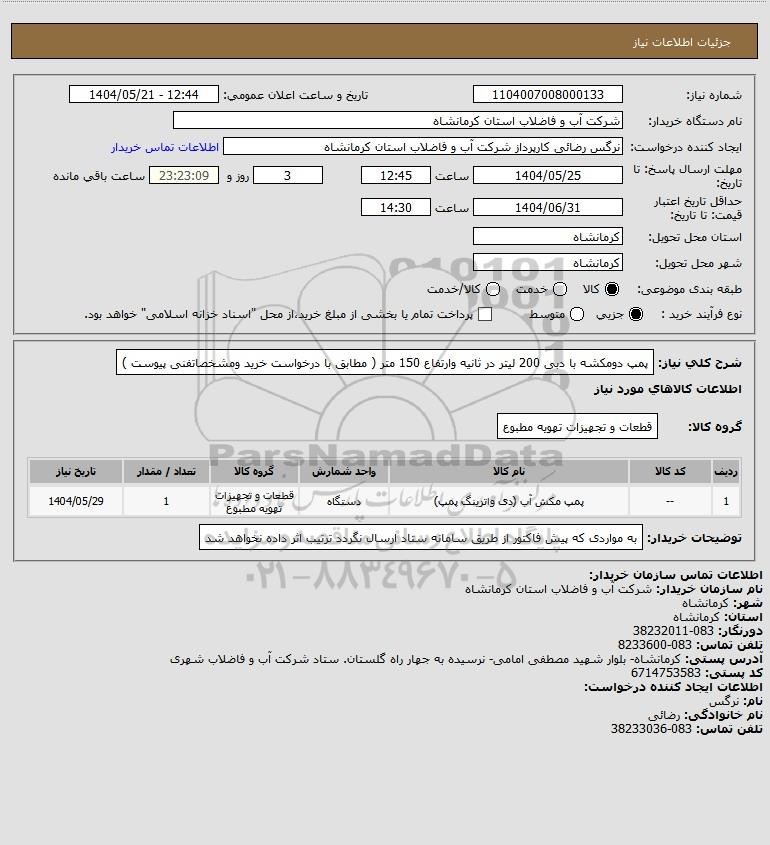 نام دستگاه خریدار:شرکت آب و فاضلاب استان کرمانشاه