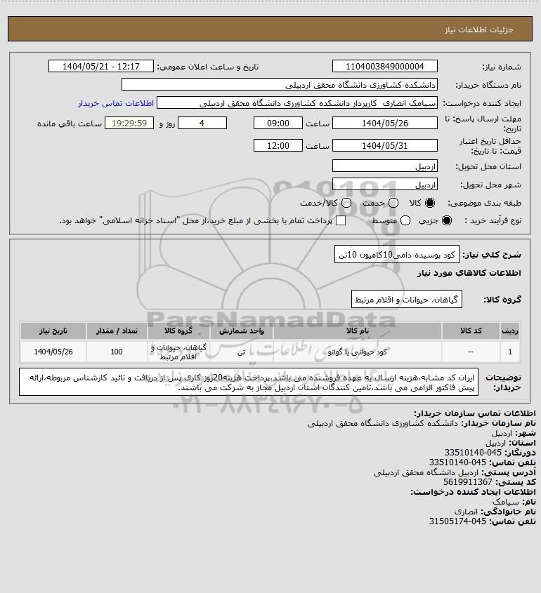 | 1 | -- | کود حیوانی یا گوانو | تن | گیاهان، حیوانات و اقلام مرتبط | 100 | 1404/05/26 |