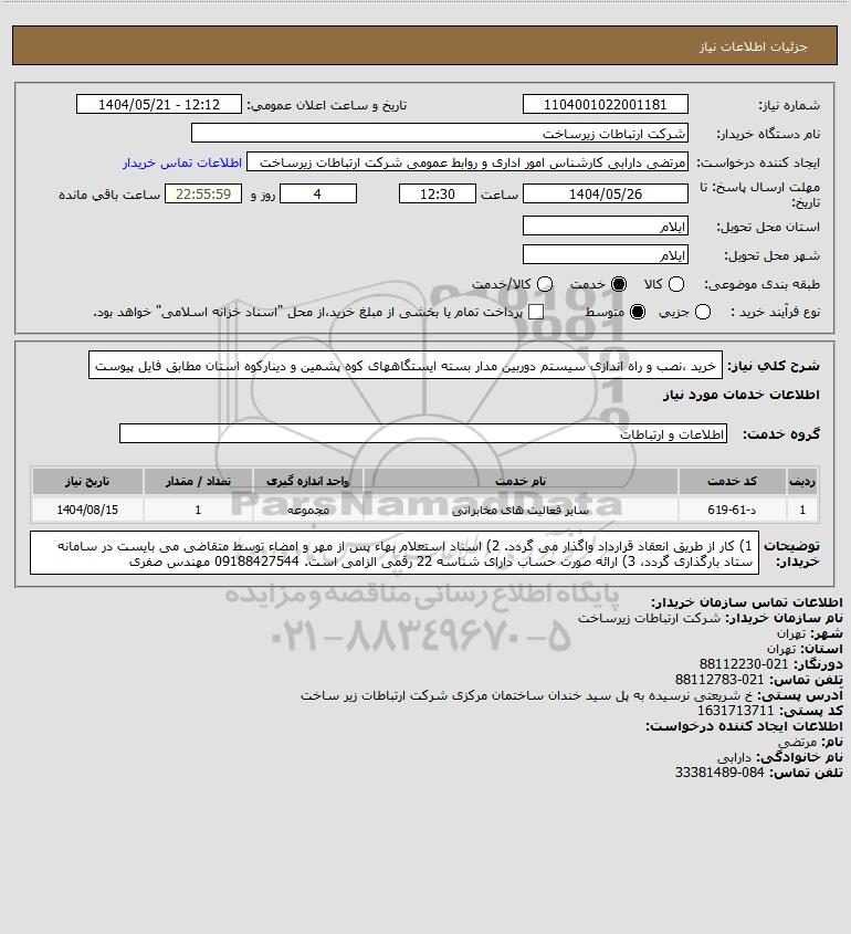شرح کلی نیاز: خرید ،نصب و راه اندازی سیستم دوربین مدار بسته ایستگاههای کوه پشمین و دینارکوه استان مطابق فایل پیوست