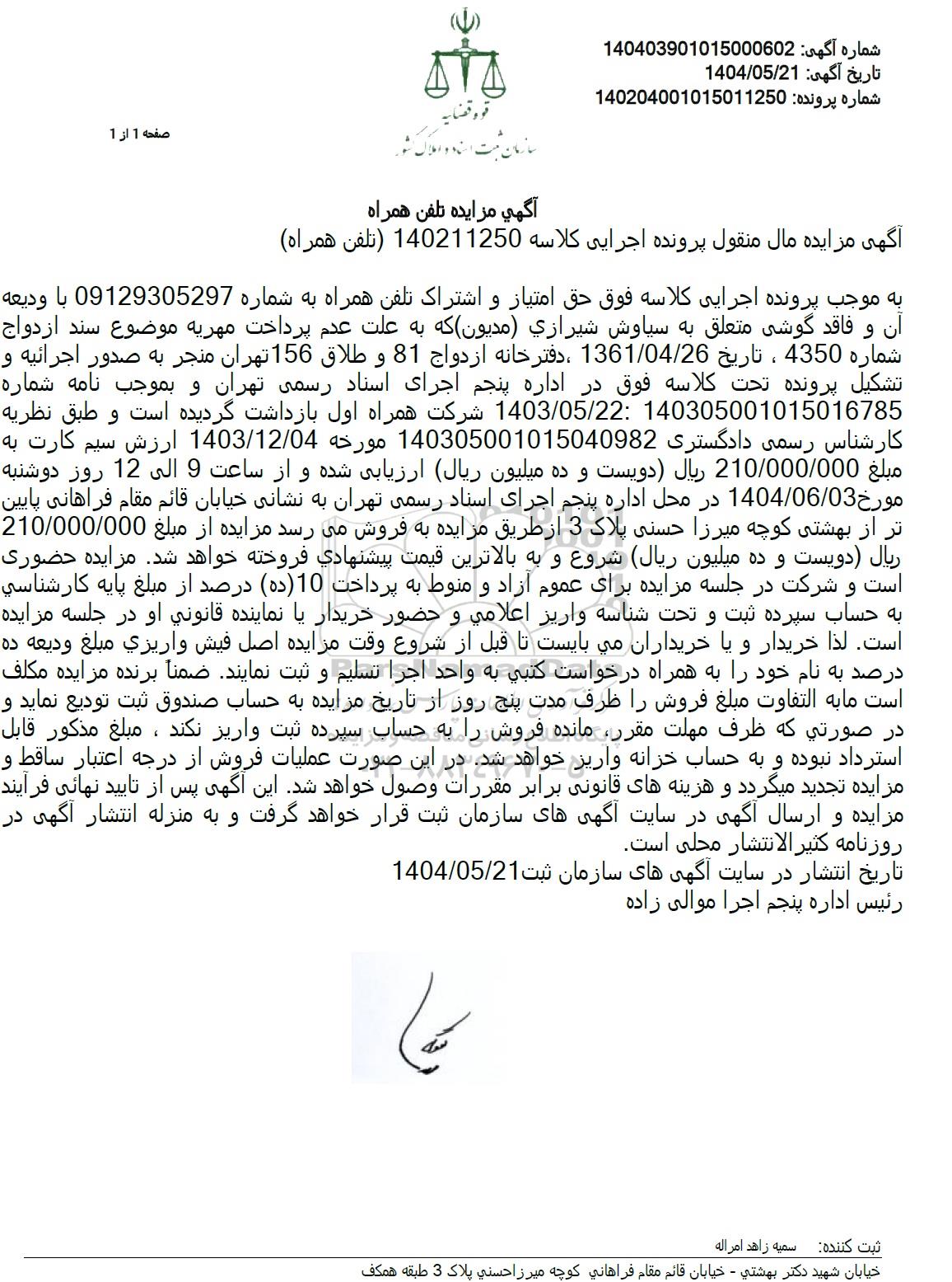 شماره آگهی 140403901015000602