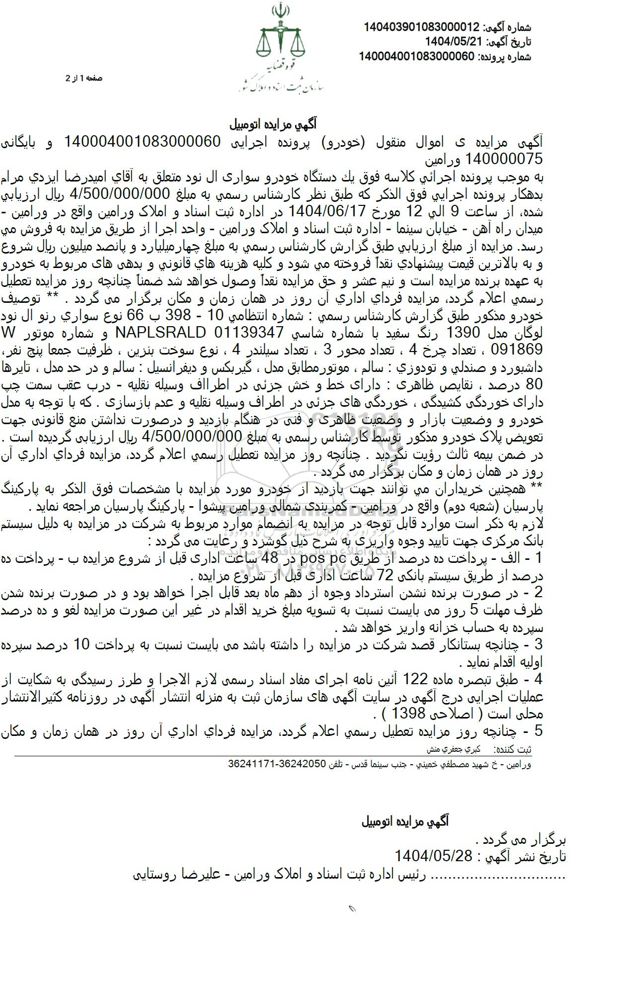 زمان مزایده از ساعت 9 الی 12 مورخ 1404.06.17