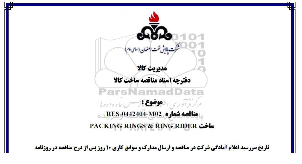 مناقصه ساخت PACKING RINGS & RING RIDER از کلیه افراد متخصص و شرکتها واجد شرایط دعوت به عمل میآید در مناقصه با کد خبرگزاری پارس نماد: 9400480 شرکت نمایند.