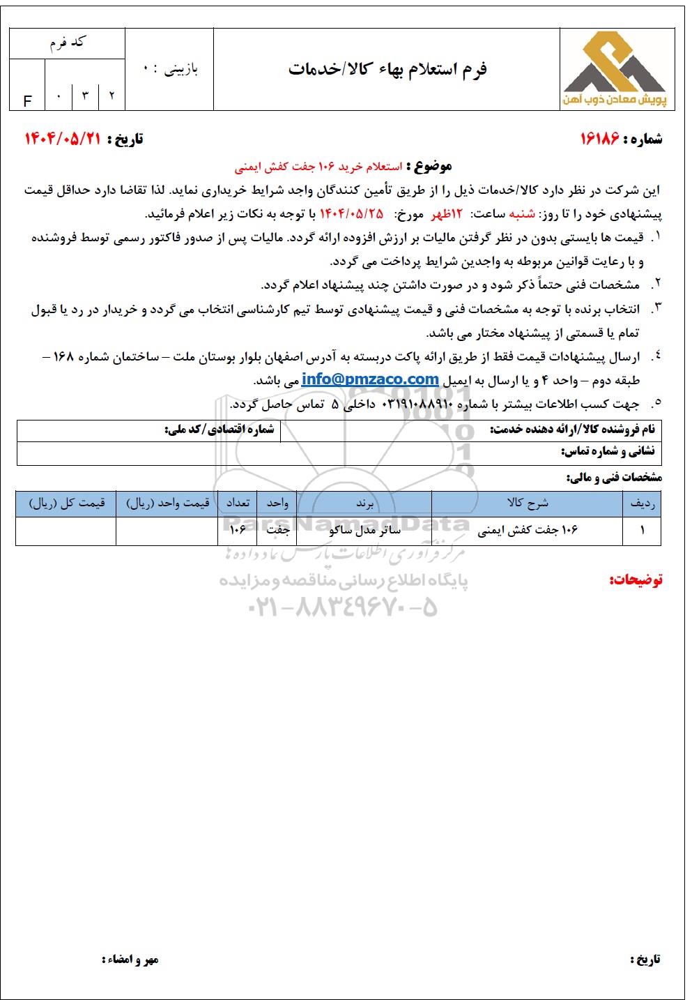 موضوع: استعلام خرید 106 جفت کفش ایمنی