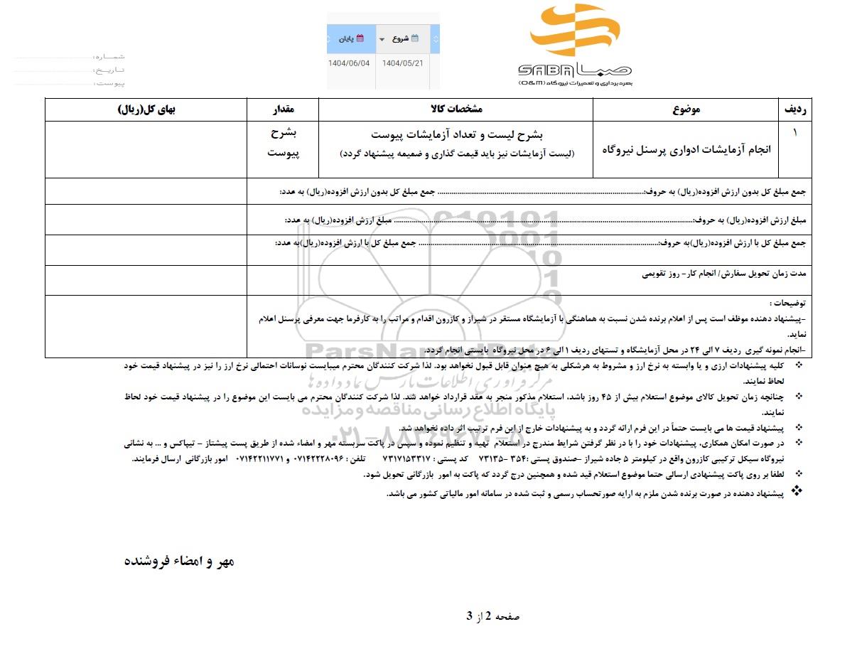 استعلام انجام آزمایشات ادواری پرسنل نیروگاه, استعلام انجام آزمایشات ادواری پرسنل نیروگاه