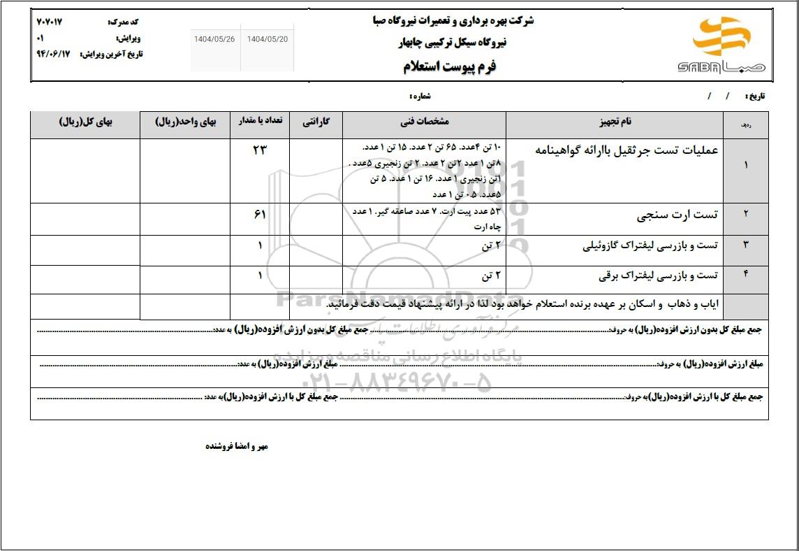 استعلام عملیات تست جرثقیل با ارائه گواهینامه , استعلام عملیات تست جرثقیل با ارائه گواهینامه