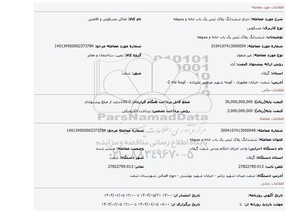 قیمت پایه(ریال): 3,000,000,000روش پرداخت تضمین: پرداخت الکترونیکی