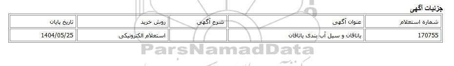 | 170755 | یاتاقان و سیل آب بندی یاتاقان | استعلام الکترونیکی | 1404/05/25 |