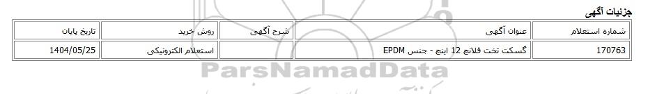 170763گسکت تخت فلانچ 12 اینچ - جنس EPDMاستعلام الکترونیکی1404/05/25