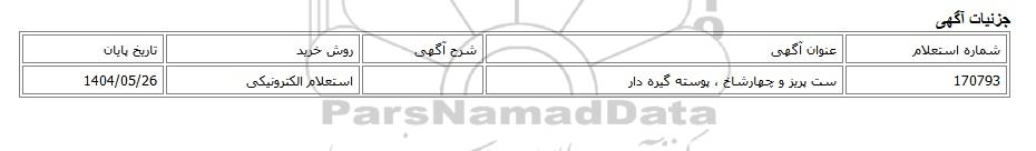 170793ست پریز و چهارشاخ ، پوسته گیره داراستعلام الکترونیکی1404/05/26