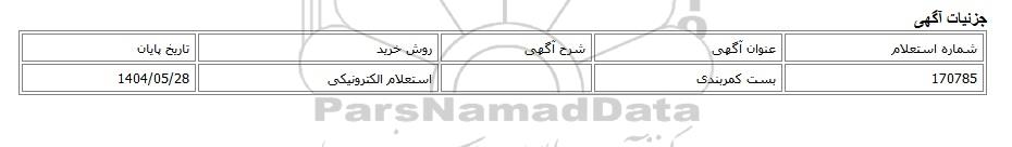 | 170785 | بست کمربندی | استعلام الکترونیکی | 1404/05/28 |