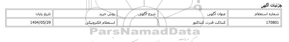 | 170801 | کنتاکت قدرت کنتاکتور | استعلام الکترونیکی | 1404/05/29 |