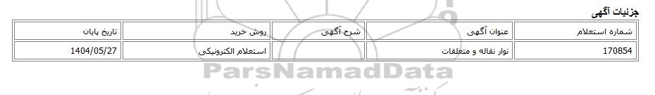 170854نوار نقاله و متعلقاتاستعلام الکترونیکی1404/05/27