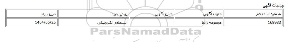 | 168933 | مجموعه رابط | استعلام الکترونیکی | 1404/05/25 |