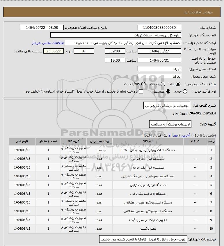 شرح کلی نیاز: تجهیزات توانپزشکی فیزیوتراپی