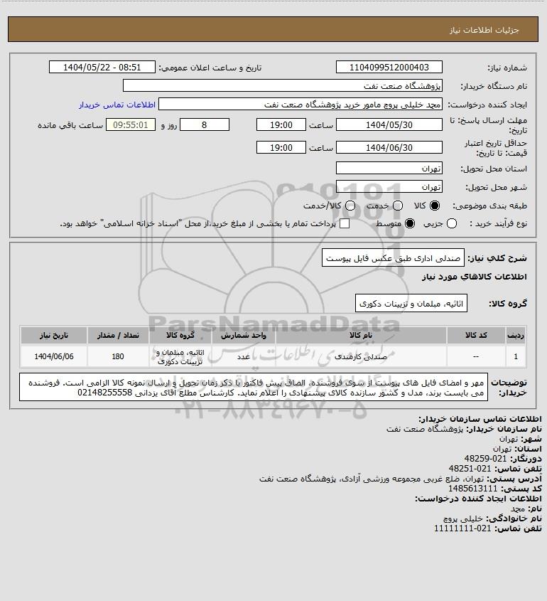 نام دستگاه خریدار:پژوهشگاه صنعت نفت