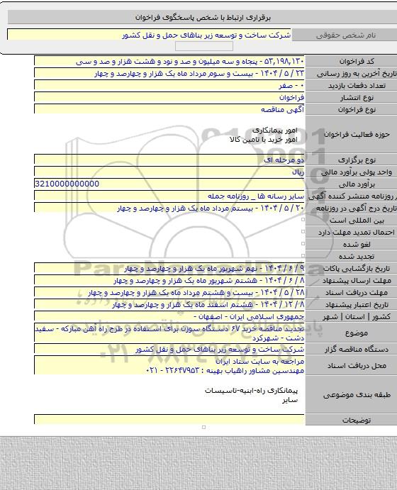 برای شرکت در مناقصه حتما از تصویر آگهی در سایت پارس نماد داده ها استفاده نمایید