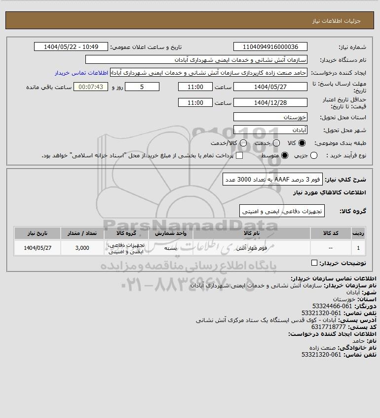 شرح کلی نیاز: فوم 3 درصد AAAF به تعداد 3000 عدد