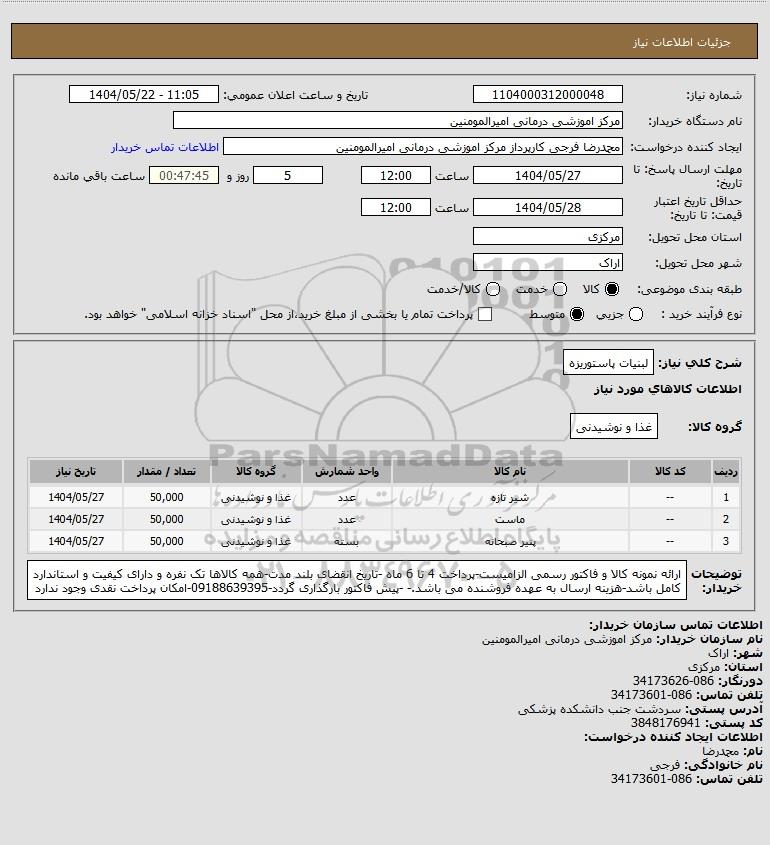 | 2 | -- | ماست | عدد | غذا و نوشیدنی | 50,000 | 1404/05/27 |