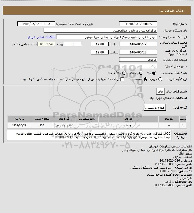 شرح کلی نیاز: چای