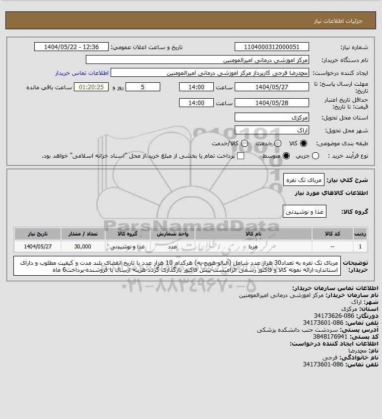 | 1 | -- | مربا | عدد | غذا و نوشیدنی | 30,000 | 1404/05/27 |