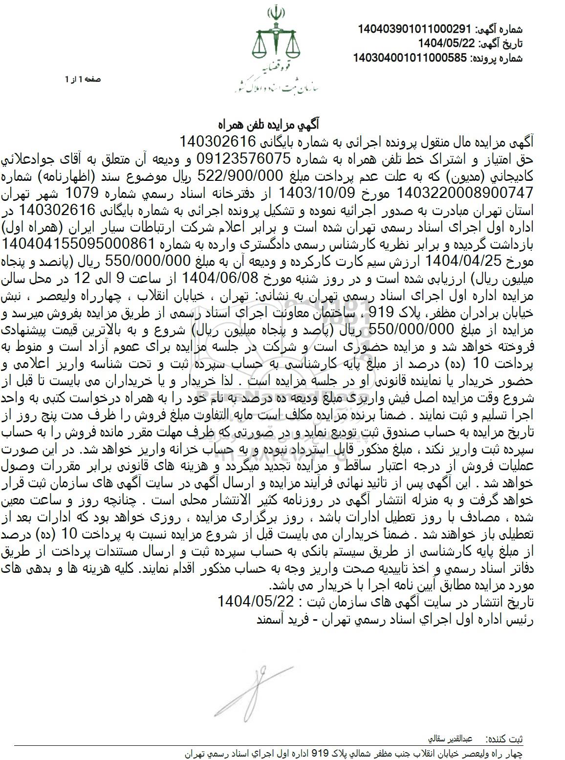 شماره آگهی 1404039010110000291