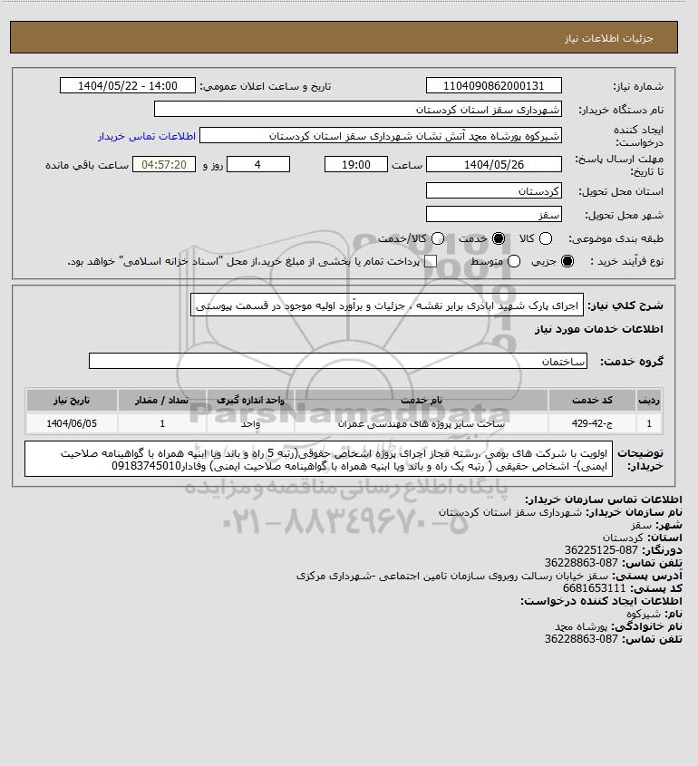 شرح کلی نیاز: اجرای پارک شهید اباذری برابر نقشه ، جزئیات و برآورد اولیه موجود در قسمت پیوستی