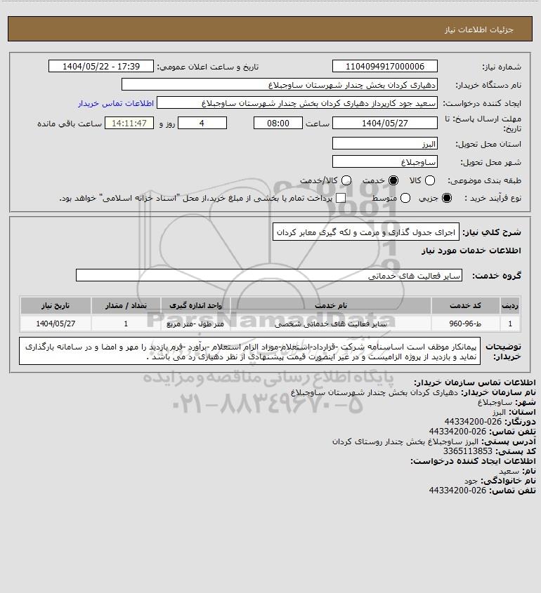 شرح کلی نیاز: اجرای جدول گذاری و مرمت و لکه گیری معابر کردان