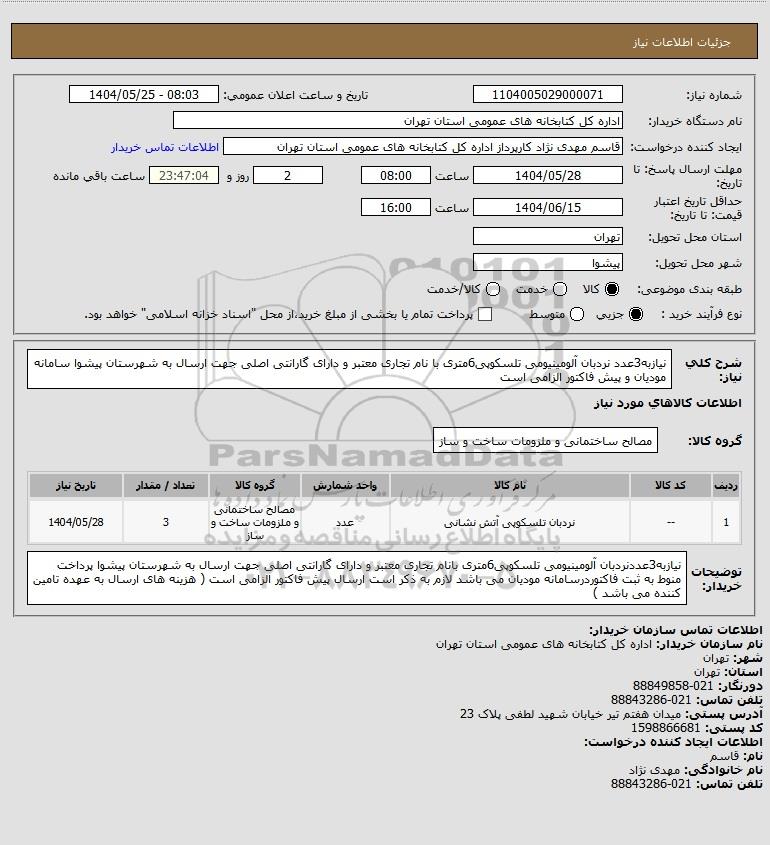 نام دستگاه خریدار:اداره کل کتابخانه های عمومی استان تهران